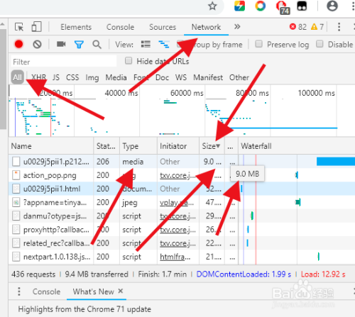 之后我们点击播放阿谁要下载的视频,在右边的代码页面找到【media】类型的文件,大师也可以点击【size】,让文件按大小摆列,最年夜的文件一般就是视频文件啦