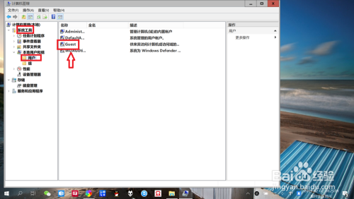 左侧点击“计较机办理”——“系统东西”——“当地用户组”——“用户”,右侧找到“guest”。