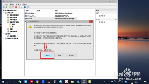 右键点击右侧“guest”——“设置密码”——“继续”,输入并确认密码即可。