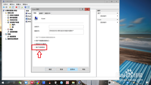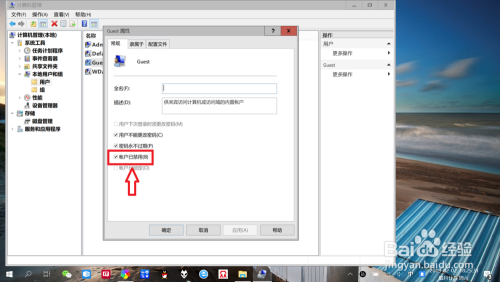 - 进入“guest属性”设置,打消“账户禁用”,即可开启“guest账户”。