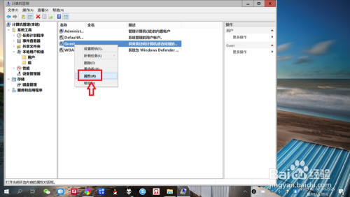 右键点击右侧“guest”——“属性”,进入“guest属性”设置。