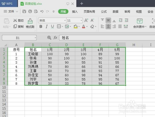 第二步:选中需要生当作曲线图的数据区域。