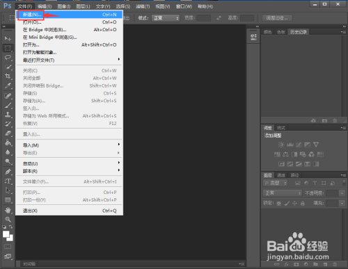 在文件菜单中点击新建;