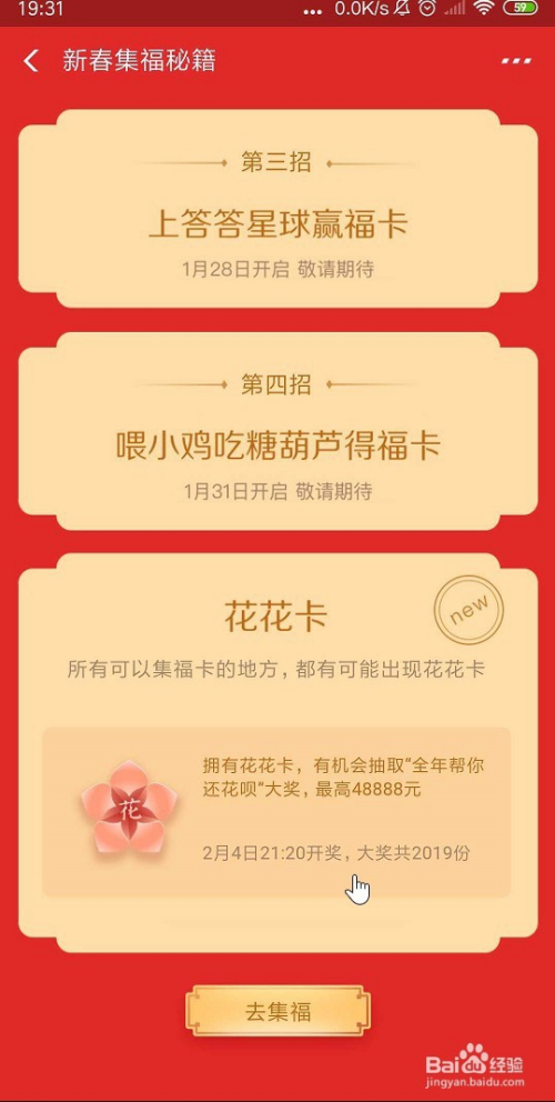 所有可以集福卡的处所,都有可能呈现花花卡拥有花花卡,有机遇抽取“全年帮你还花呗"年夜奖,最高48888元