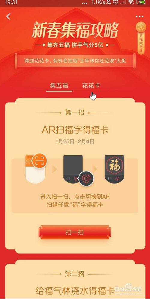 在页面的最上方就可以看到集五福过福年的活动,点击进入