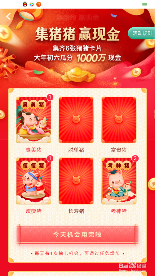 界面切换。我们点击下方的抽取卡片的图标。我们就可以获得一个猪猪了。