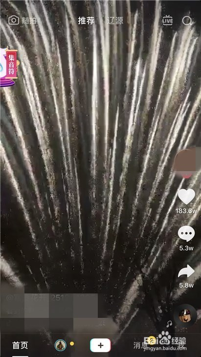 我们打开我们的抖音短视频,在我们的短视频首页点击一下左上角的这个集音符。