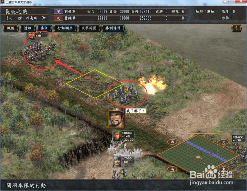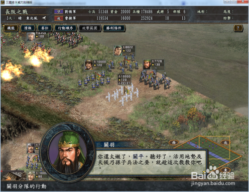 游戏胜利前提是击溃曹仁的步队,掉败前提是关羽步队被击溃。