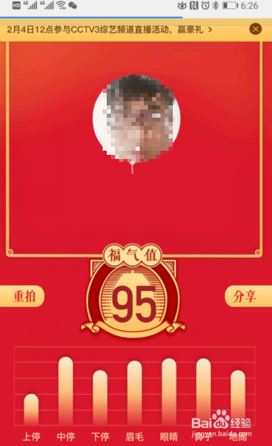 拍摄后,页面就会阐发本身的自拍,同时给出本身的福分值。
