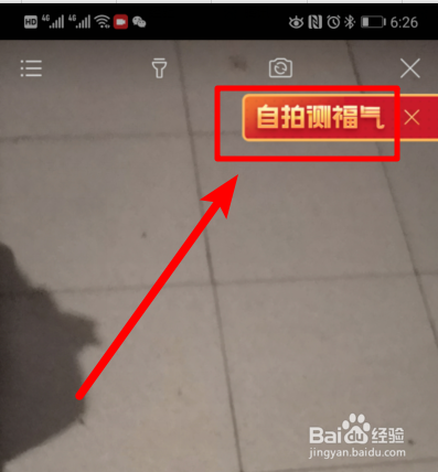 点击打开相机后,我们点击右上方自拍测福分的选项进入。