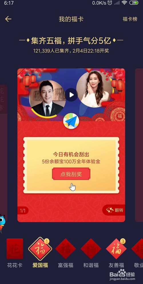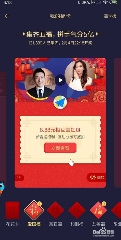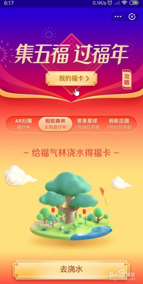 在页面的最上方就可以看到集五福过福年的活动,点击进入
