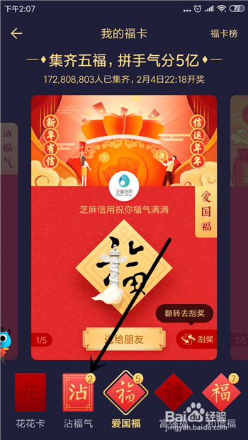 翻转过来后就能看到本身沾到了什么福卡,花花卡和敬业福都是有机遇的。