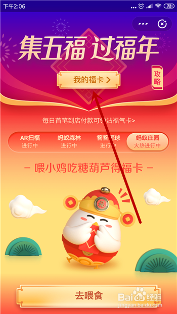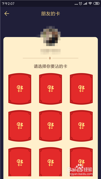 在沾福分的时辰要选择一个福卡,点击福卡。