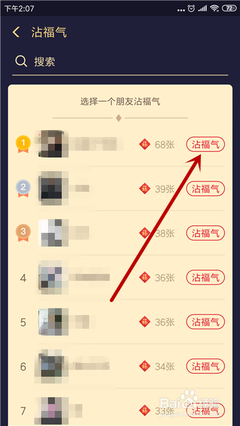 沾福分需要选择一个老友,必然要记住选择福卡多的老友,点击【沾福分】。