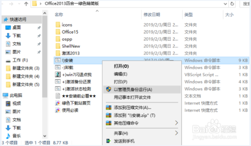 把下载的文件解压出来,后把鼠标移到“安装.cmd”文件,然后“右键办理员身份运行”,按肆意键安装,期待主动安装完当作Office2013 图