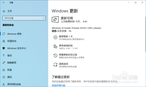 下面介绍 Windows 10 Insider Preview 18329.1 (19h1_release) 系统的更新过程。
