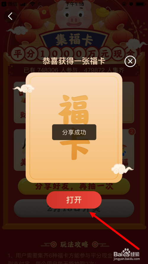 下面要跟大师分享的是返还购集福卡等分1000万现金红包的方式。