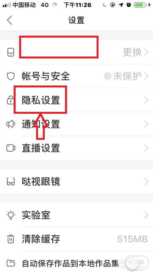 点击“隐私设置”,进入“隐私设置”。