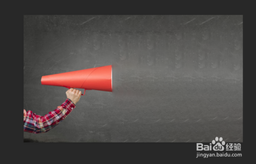 首先将一张有钱的图片和有喇叭的图片放在一路,然后调整大小和角度
