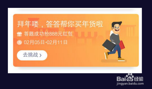在【贺年喽,答答帮你买年货】点击“起头挑战。”