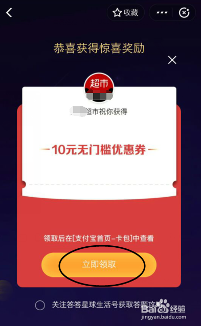 全数标题问题都答对,就可以获得奖励红包,红包在【卡券】可以查看。