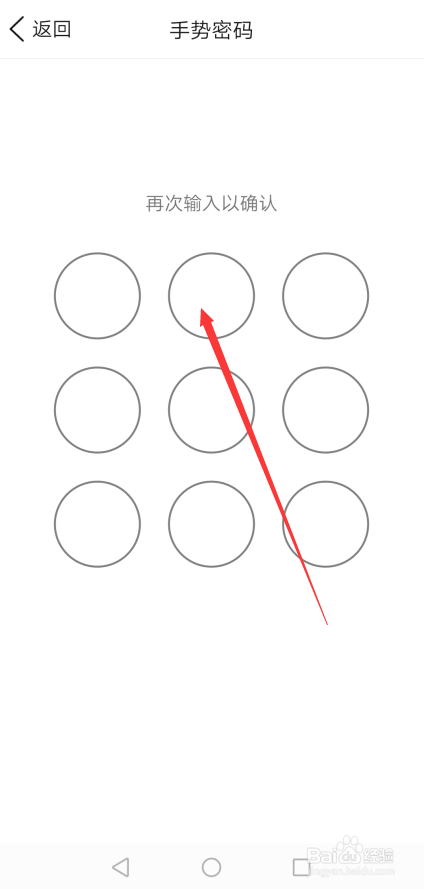 QQ钱包手势密码绘制当作功后,QQ钱包要求再次输入手势密码确认,如下图所示。