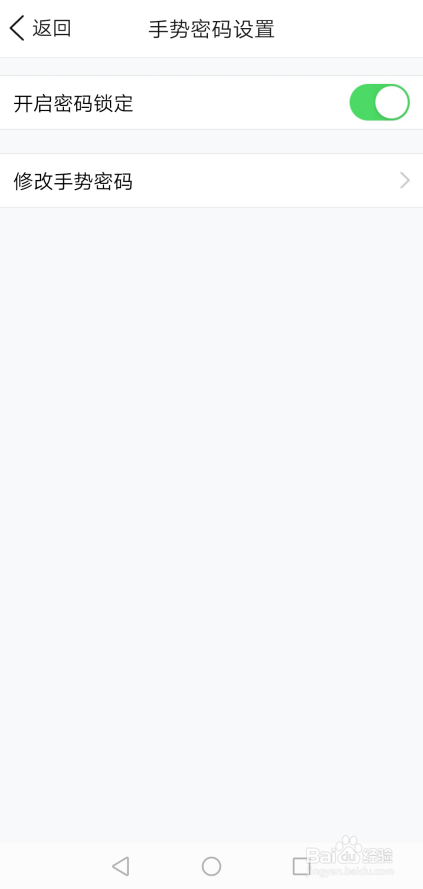 QQ钱包手势密码设置当作功后,直接返回到手势密码界面,此时可以看到开启密码锁定被打开了,如下图所示。
