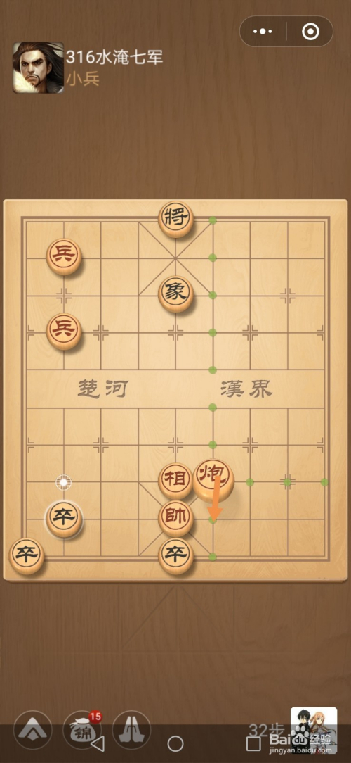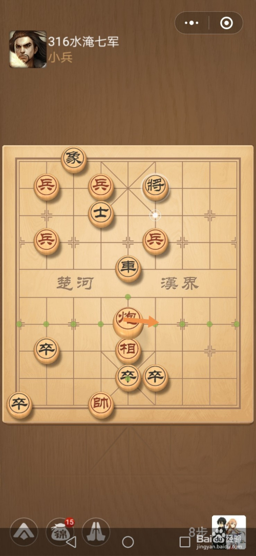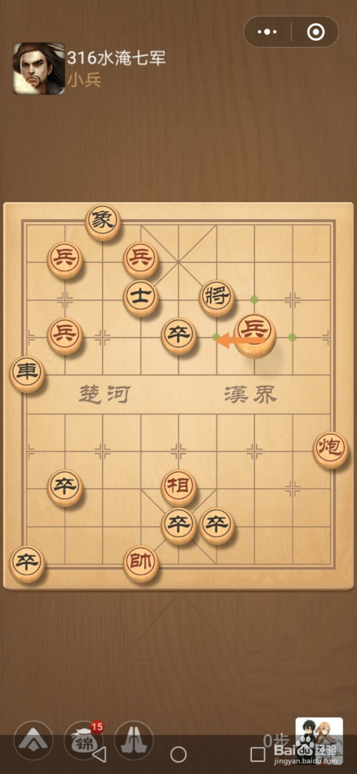 第316关第一步卒往左移动一步。