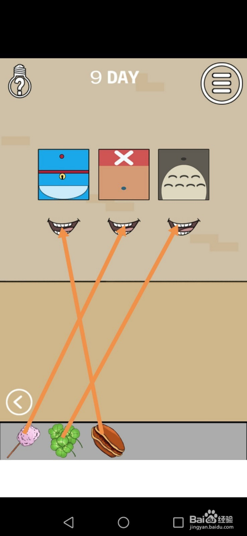 在右边房间里,将获得的工具按照下图中箭头所示拖动到指定位置。
