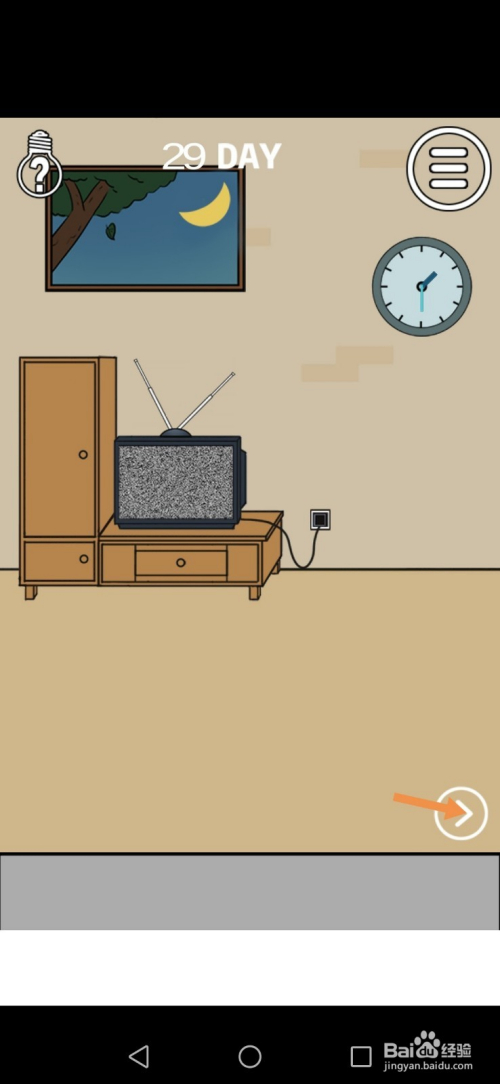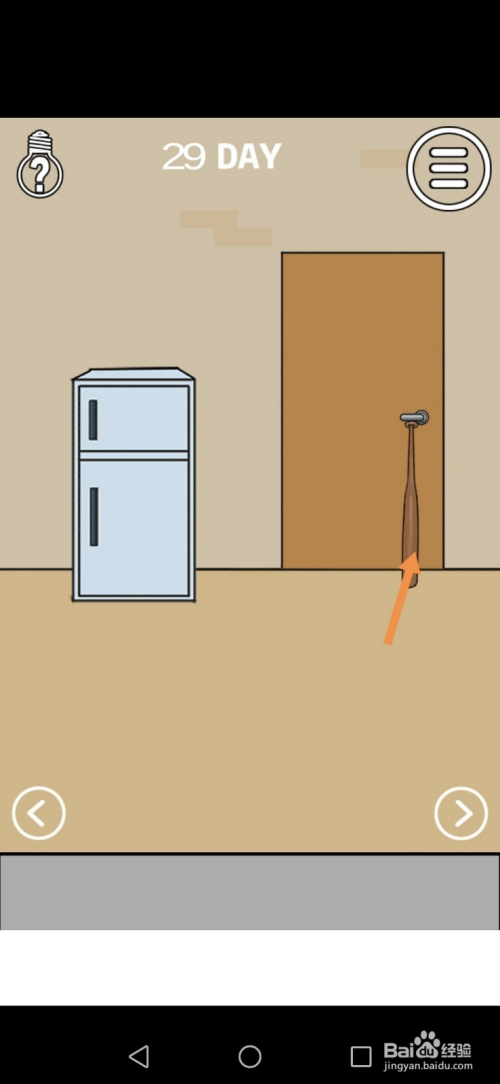 在右边房间里,先点击棒球棍,然后点击门。门打开后,点击妈妈,然后点击标的目的右箭头进入最右边的房间。