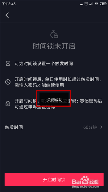 比及封闭时候锁之后就会提醒我们【封闭当作功】,这样在利用就没有时候的限制了。