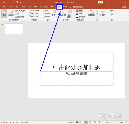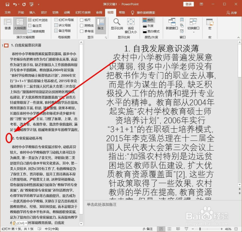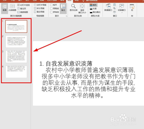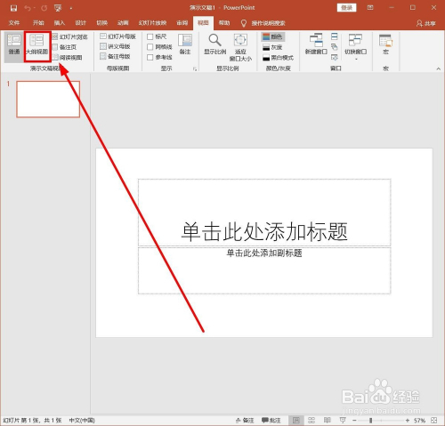 单击菜单栏的这里,把PPT的通俗视图转到“纲领视图”