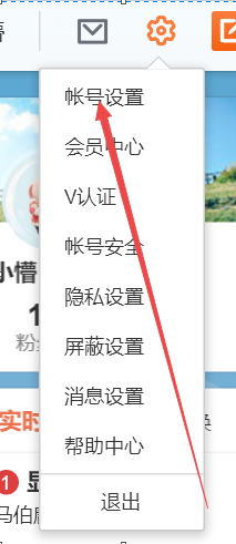 点击设置图标之后,就会呈现如下图所示的弹框,选择弹框中的第一个设置“帐号设置”。
