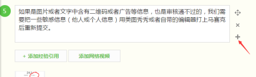若是是因为经验过于简单,内容不敷丰硕而没有经由过程审核。我们仍是从头编纂经验,必定是我们省略了一些步调,一篇优异的经验应该写的尽量具体,所以我们思虑一下哪些环节还可以进行弥补,添加关头步调以及相关配图。如下图所示,单击右边的加号就可以弥补关头步调。