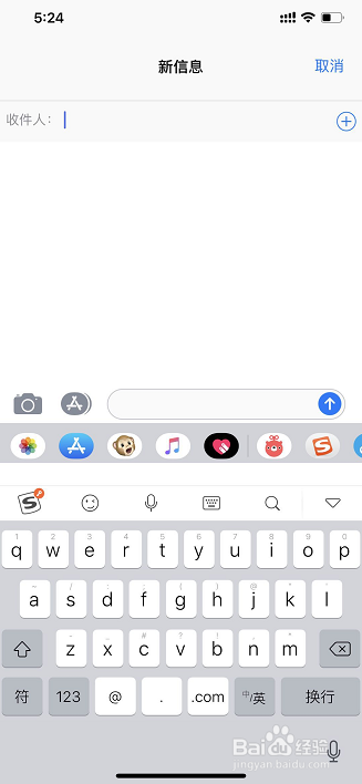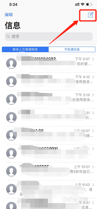 打开信息应用,点击右上角建立新信息;
