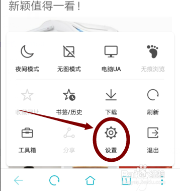 在弹出菜单里面点击设置进入设置页面。