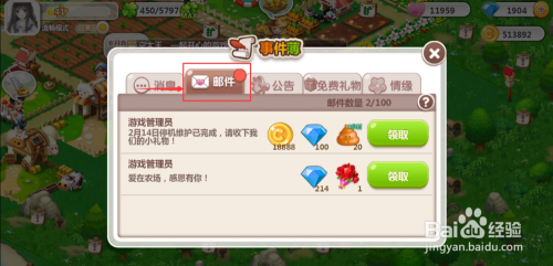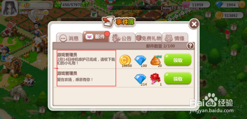 可以看到游戏办理员发送的邮件,申明了赠予礼品的事由;