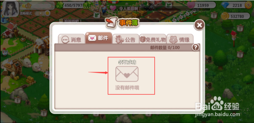 领取当作功,取得赠予的礼品后,会显示没有邮件了;