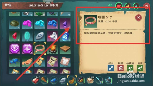 第三步,筹办一个项圈【捕获饲养宠物必需道具】需要1皮革和1铁钉合当作,如下图