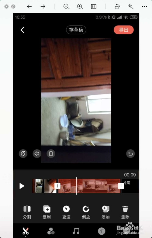 点击完当作,然后移动时候轴,点击朋分,把素材视频朋分为小段,不需要的片段删除。剩下需要的。