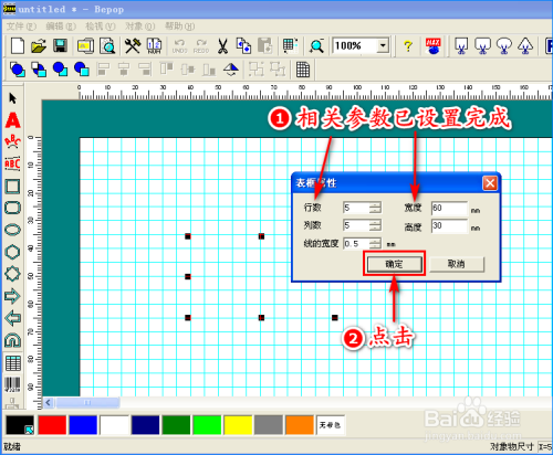 在弹出的对话窗中,我们设置表格行数、列数、宽度、高度、线宽这些参数,所有参数设置完当作后,再点击“确定”,即可获得本身所需的表格。如图所示: