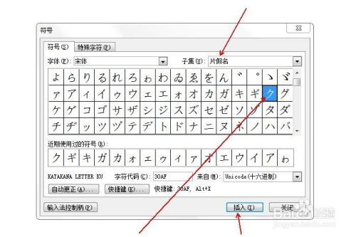 在“子集”中选择“片化名”,并鄙人方选中片化名ク,点击“插入”。