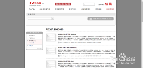 首先在浏览器中输入佳能 PIXMA MG3600 series利用申明,找到官方网站点击进入,如下图所示。