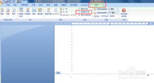 插入页码后,菜单栏即主动跳转到“设计”,若是没有,双击页码即可跳转。此时,在“奇偶页分歧”前面打√;