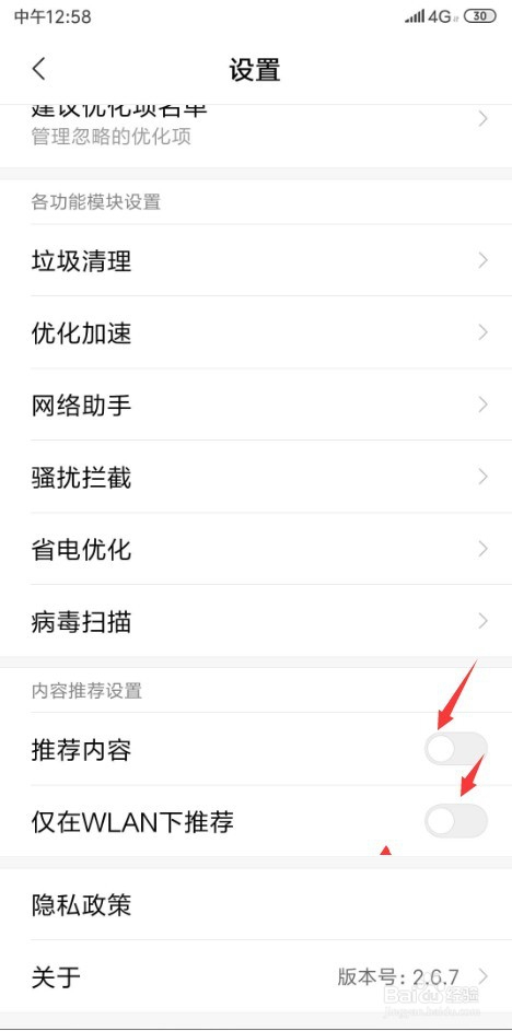 附加 浏览器等软件,点开该软件的设置》找到 动静通知办理》 把 保举内容 全数封闭!