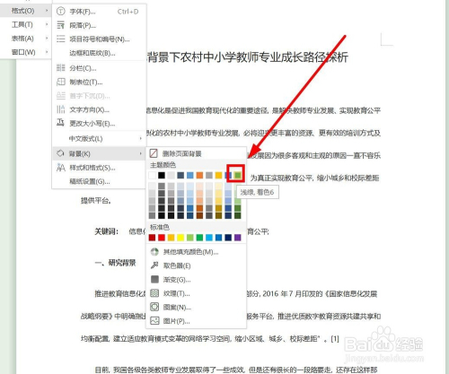 在布景的下一级菜单中选择本身需要的颜色单击(这里选择“浅绿”)