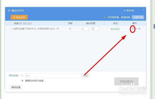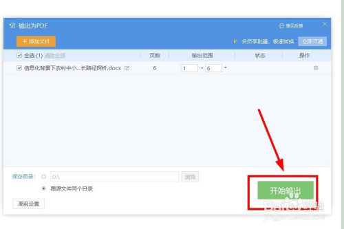 在“输出为PDF”对话框中勾选待转换文件后,选择保留路径