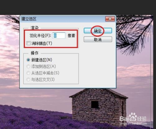 第六步:在“成立选区”对话框中,成仙半径设置为0,去失落“消弭锯齿”前面的勾选。