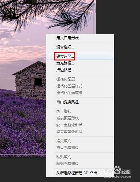 第五步:在选中区域,单击鼠标右键选择“成立选区”。