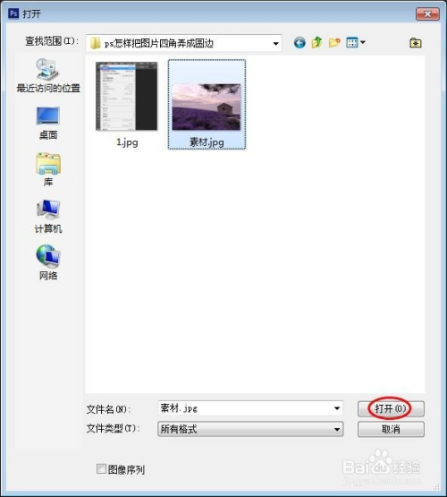 ps怎么样把图片四角弄当作圆边